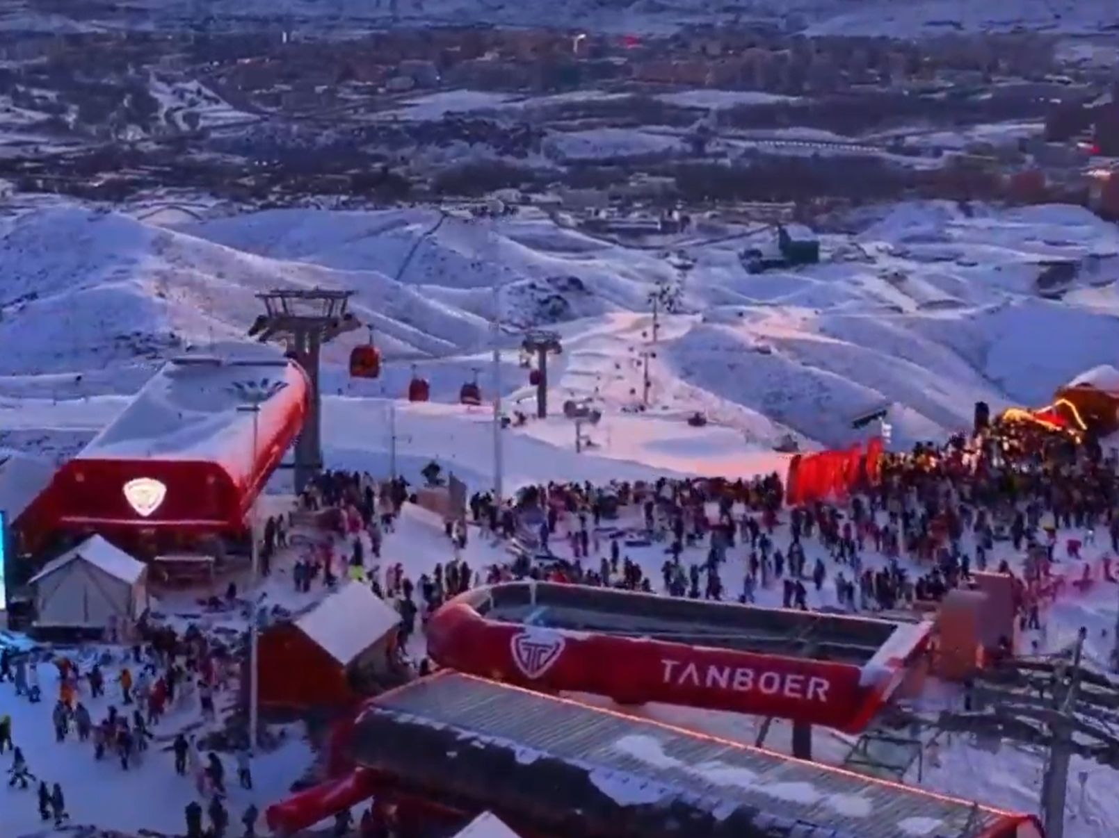 新疆阿勒泰:滑累了就在雪场山顶一起摇摆