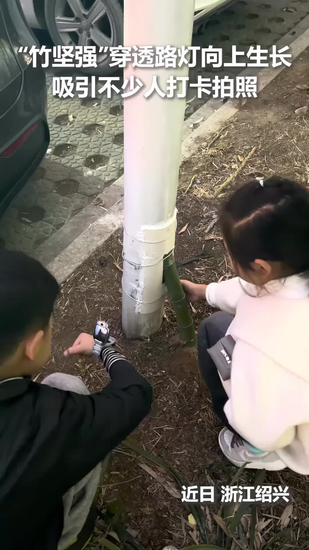 “竹坚强”穿透路灯杆向上生长,引众人打卡拍照